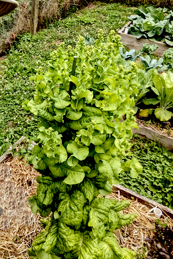 It turns out, a lettuce – caught in the hormonal maelstrom as the teenager – that lettuce forgoes all common sense and begins a mass dash for the stratosphere, the better to make its flowers the highest, most elevated attractants to pollinators for miles around. My poor, forgotten lettuce bolted to be almost 4 feet tall.