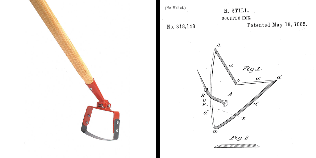 It turns out, of course, there is an official "scuffle hoe" but it is inextricably tied up in the US Patent Office as "US318148A," filed by one Henry Still in 1885.